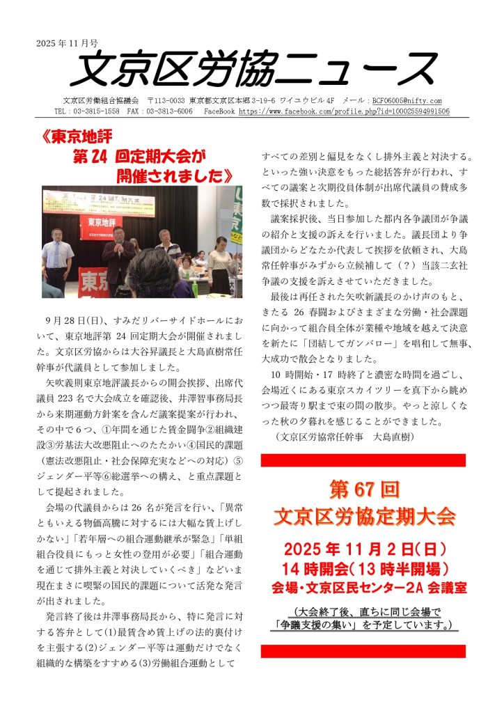 投稿日: 2025年10月16日2025年10月16日 投稿者: bcf06005@nifty.com文京区労協ニュース 2025年11月 Follow me! @bunkyo_kurokyo FacebookX